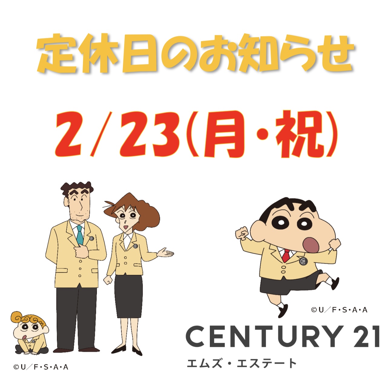 2/23(月・祝)定休日のお知らせ2026-02-22